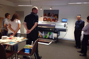 お客様ニーズの吸上げをエリアごとに積極化するための特徴的な取り組みとして、“ミニ展”があります。ミニ展とは、各社が集結する大規模展示会とは異なり、ミマキ単独で行う小規模なプライベート展示会のことで、お客様との対話を通じ、具体的な提案活動につなげています。